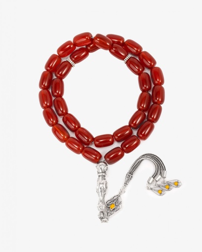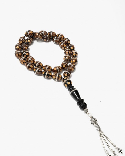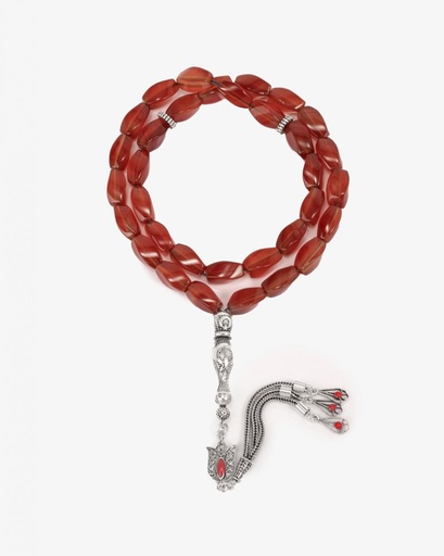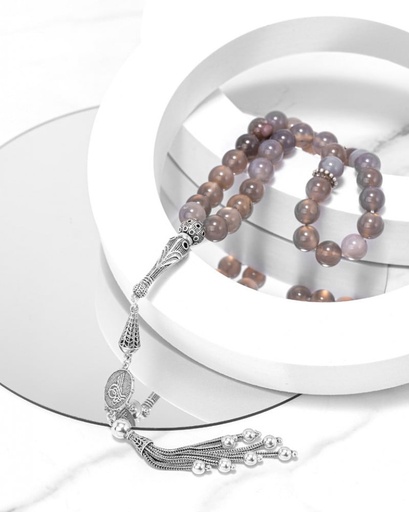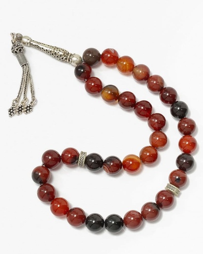 سبحة فضة حجر عقيق البني الفاخر