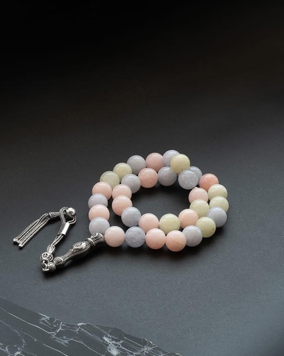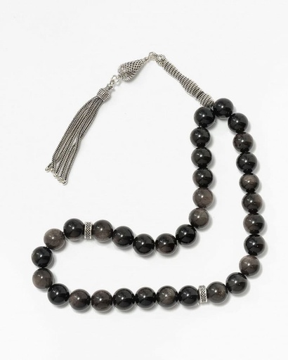 سبحة فضة حجر كريم شفاف بعروق