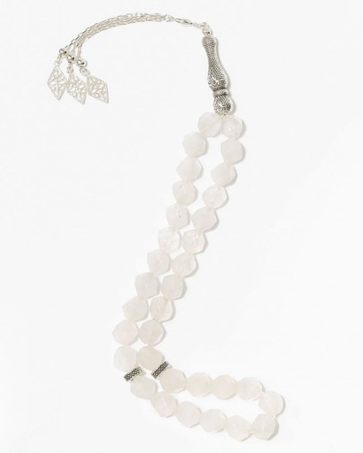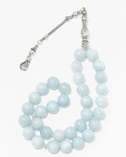 سبحة فضة حجر جاد الابيض الفاخر