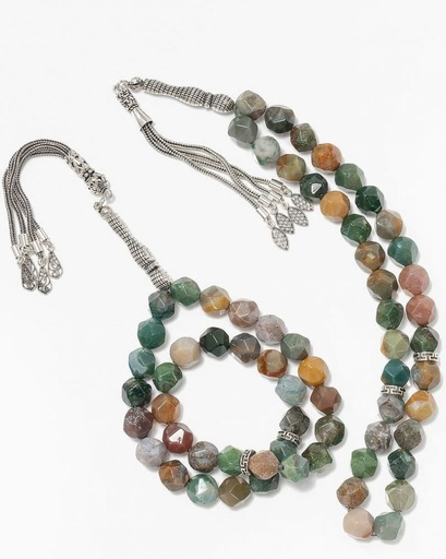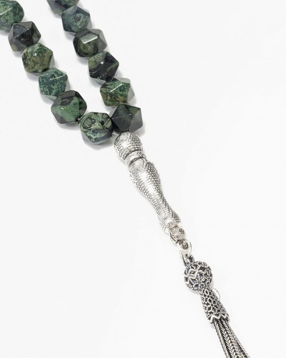 سبحة فضة حجر عقيق الاخضر الفاخر
