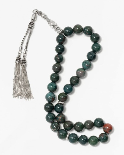 سبحة فضة حجر الدم النادرة