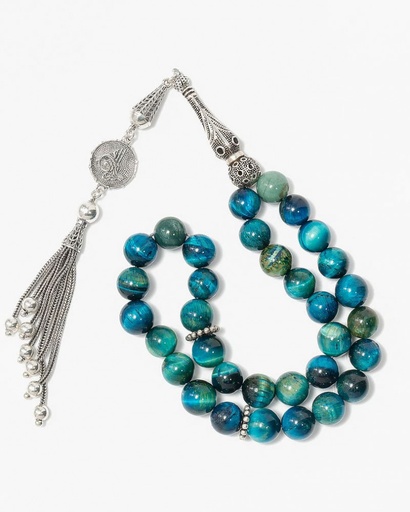 سبحة فضة عين النمر الازرق الفاخر