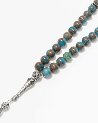 سبحة فضة حجر لازورد مالكايت