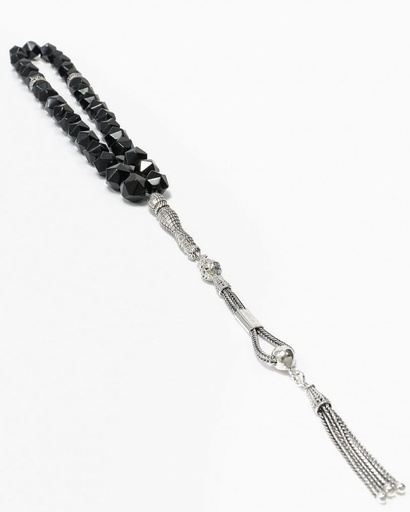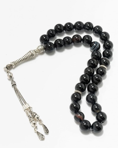 سبحة فضة عقيق اسود بعروق مميزة