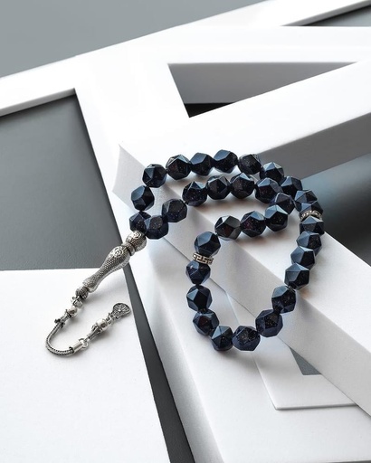 سبحة فضة زجاج بركاني بقصة الاماس