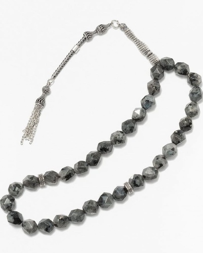 سبحة فضة حجر لابرادوريت الرمادي
