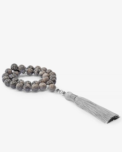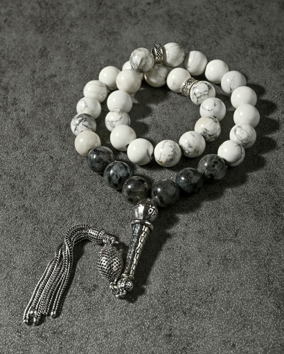 سبحة فضة حجر جاموس اييض ورمادي ( هولايت )