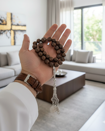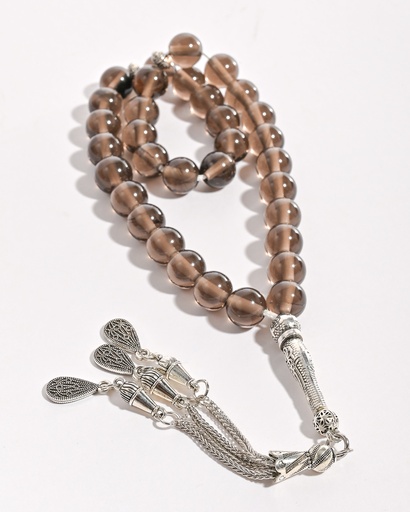 سبحة حجر كوارتز دخاني 33 خرزة