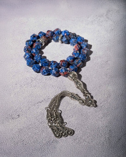 سبحة حجر عقيق ازرق بقصة الاماس