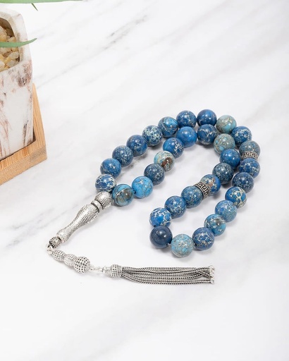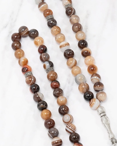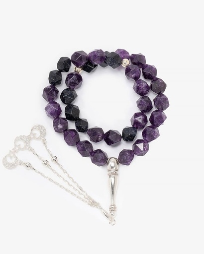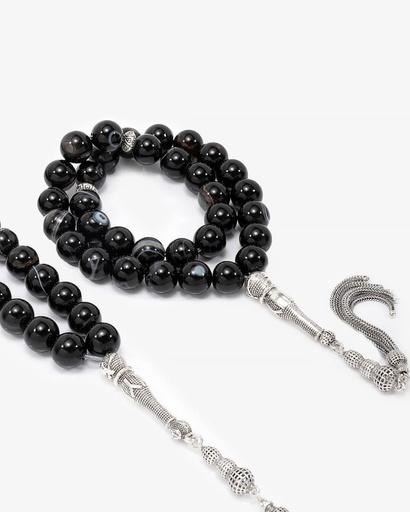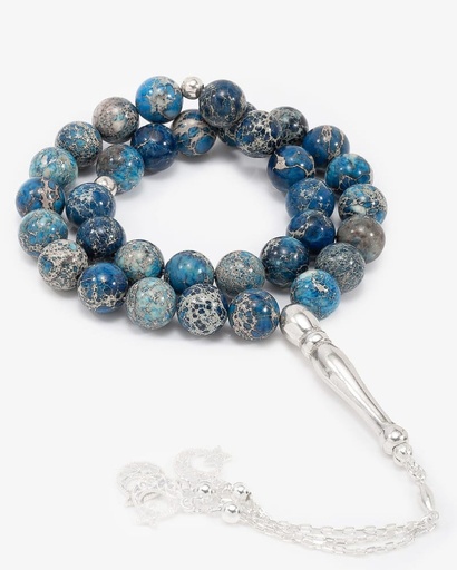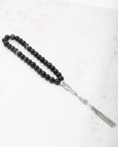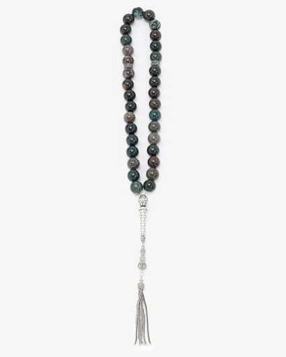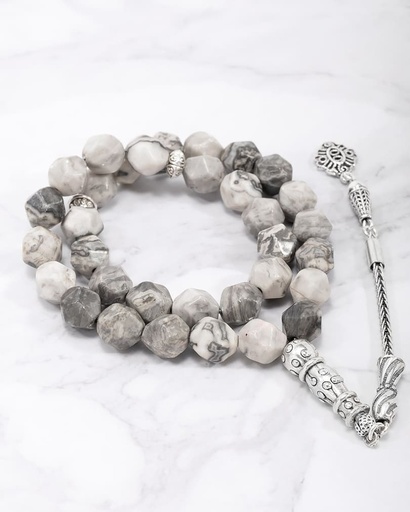 سبحة فضة حجر لابرادوريت الرمادي الفاخر