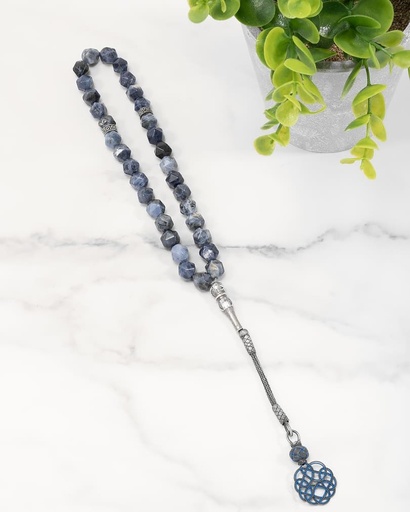 سبحة حجر لابرادوريت الرمادي بقصة الاماس