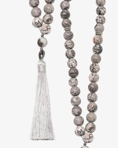 سبحة حجر تورمالين بلون رمادي