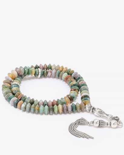 سبحة فضة حجر عقيق هندي 99 خرزة