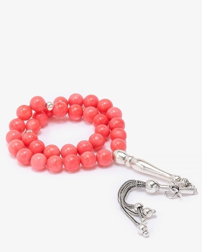 سبحة فضة حجر مرجان وردي