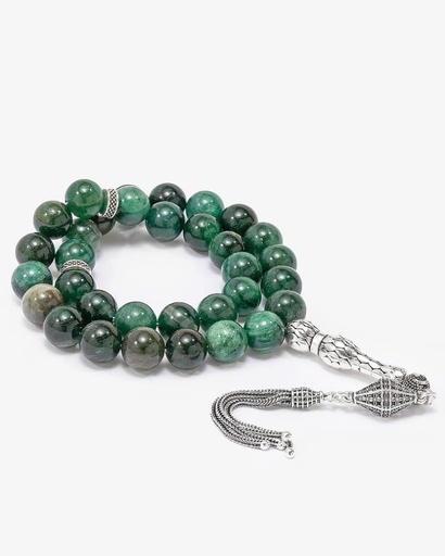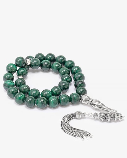 سبحة فضة حجر ملاكيت أخضر ملكي