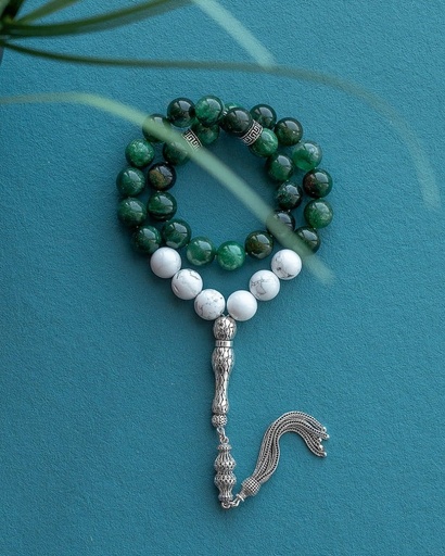سبحة حجر كريم عقيق اخضر وابيض