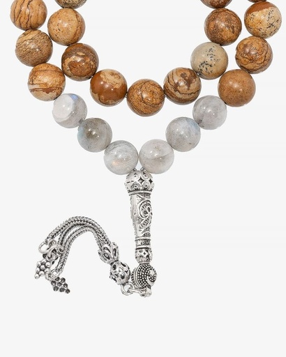 سبحة فضة حجر يشب جملي ولابرادوريت