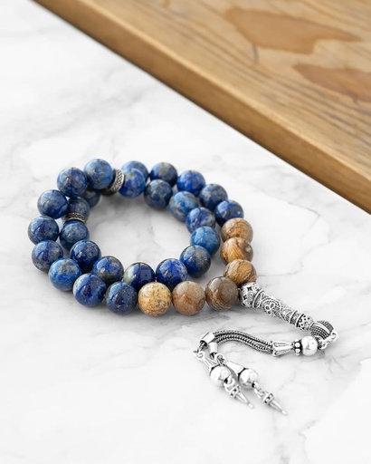 سبحة فضة حجر لازورد ويشب طبيعي