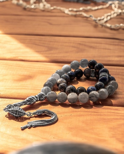 سبحة فضة حجر لابرادوريت وسوداليت طبيعي