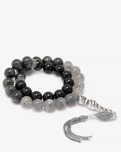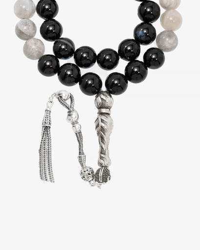 سبحة فضة عقيق أسود بعروق ولابرادوريت