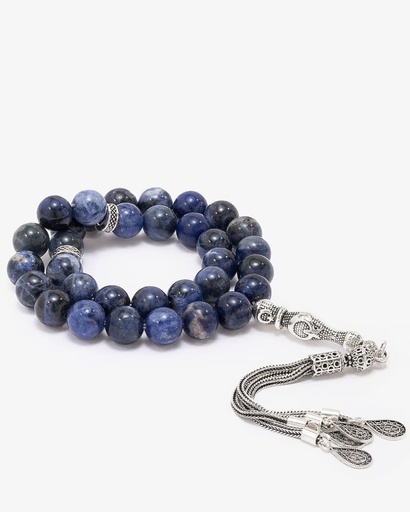سبحة فضة حجر سوداليت طبيعي