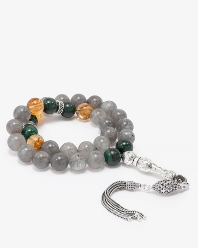 سبحة فضة أحجار طبيعية لابرودايت وسترين وملاكيت