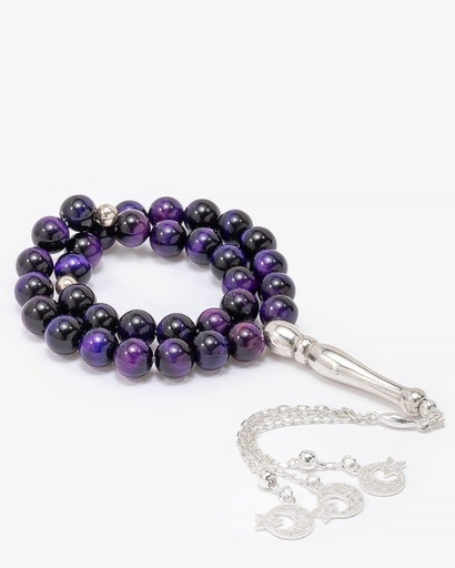 سبحة فضة عين النمر اورجواني 33 خرزة