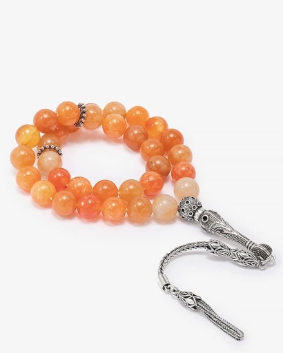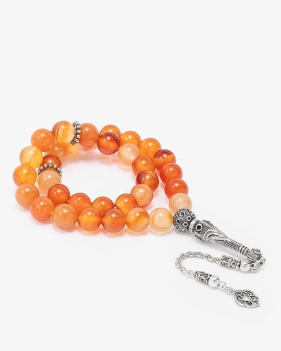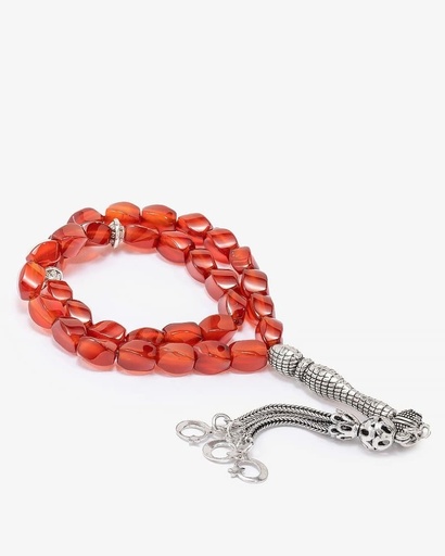 سبحة فضة عقيق يمني كبدي 33 خرزة