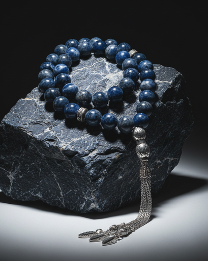سبحة حجر سوداليت ازرق بعروق انيقة