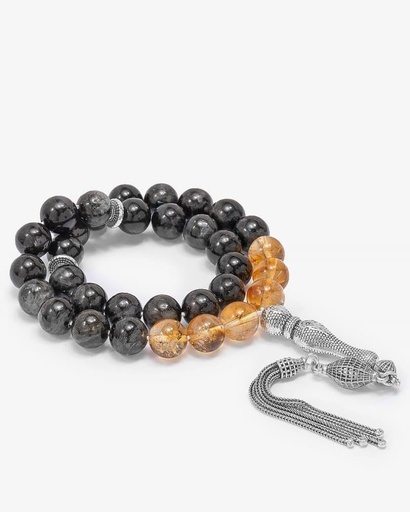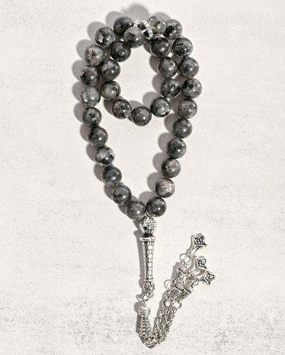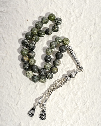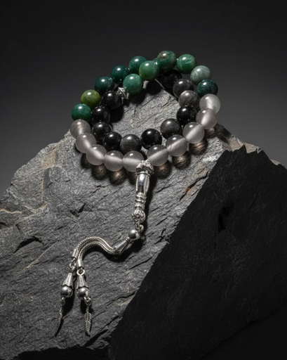سبحة فضة باحجار كريمة عقيق وزجاج بركاني