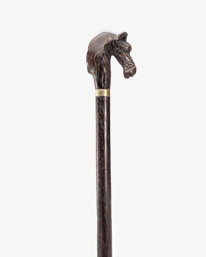 عصا عكاز خشب الإبانوس منقوش رأس الحصان