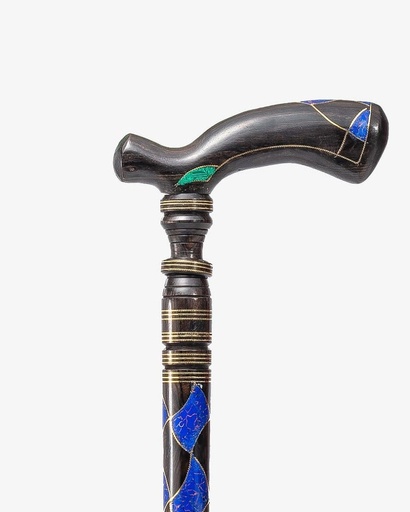 عصا عكاز ايبانوس مزخرف شبيه اللازورد والملاكيت