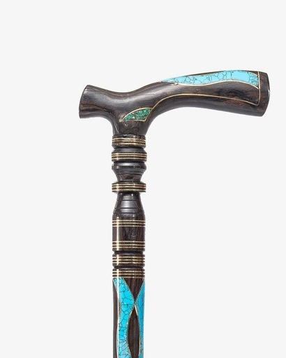 عصا عكاز ايبانوس مزين شبيه الملاكيت والفيروز