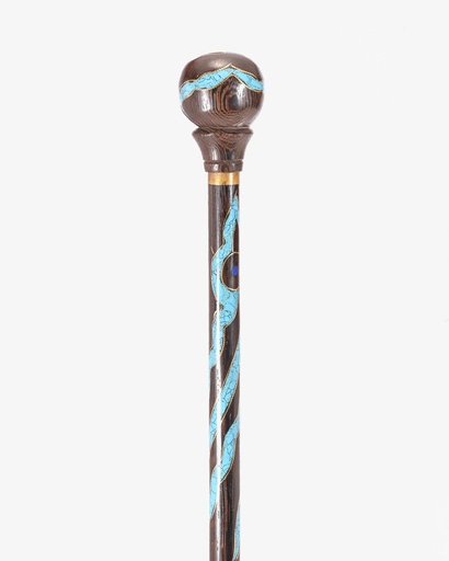 عكاز خشب فنجي مزين بالفيروز ولازورد الفاخر