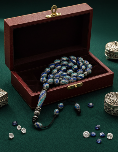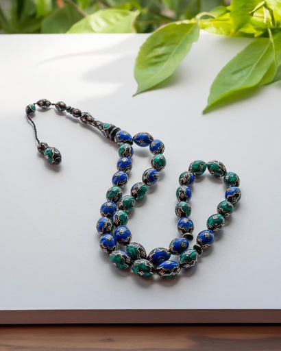 سبحة يسر بفضة مزين لازورد وملاكيت طبيعي