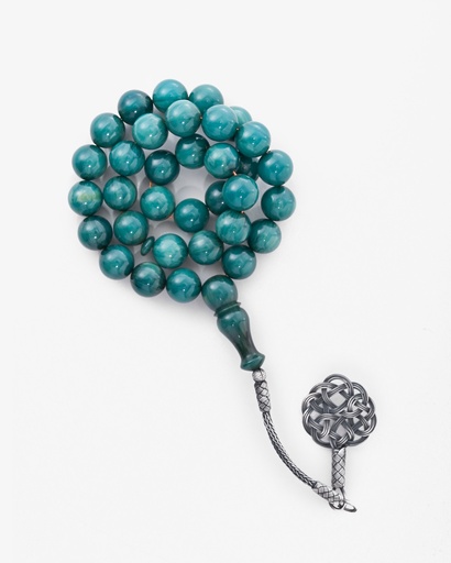 سبحة كوك مزين بالفضة شبية الكهرمان والفيروز