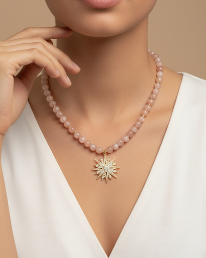 عقد الحجر الرملي الطبيعي مع تعليقة النجمة الذهبية