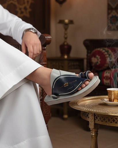 نعال زبيري جلد طبيعي بلون بحري