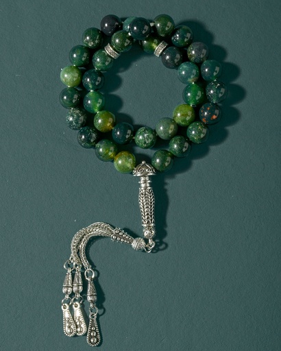 سبحة فاخرة من العقيق الأخضر الطبيعي