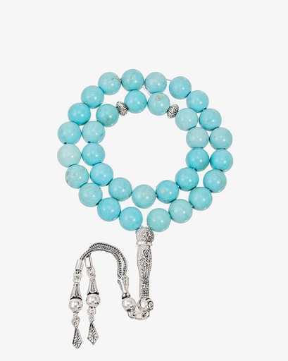 سبحة فضة فاخرة حجر فيروز طبيعي