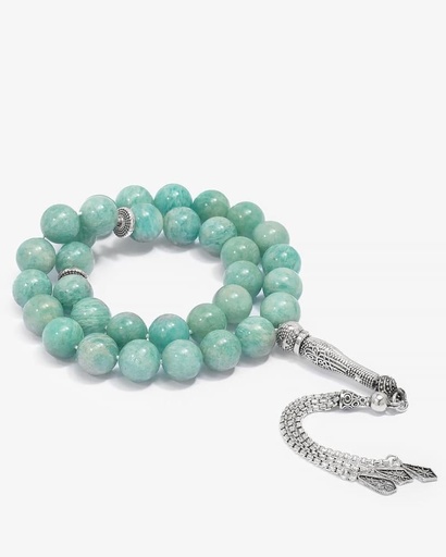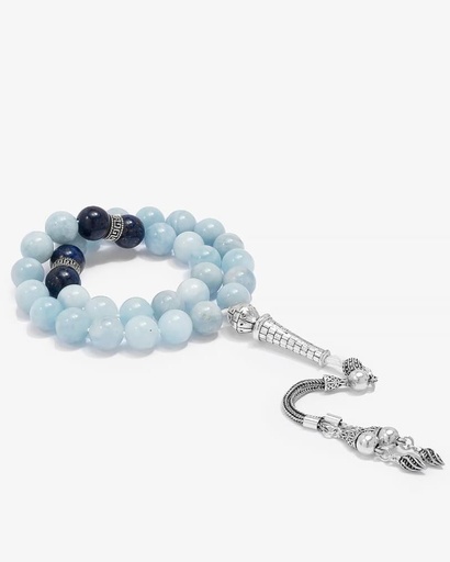 سبحة فضة بحجر اكوامارين طبيعي فاخر