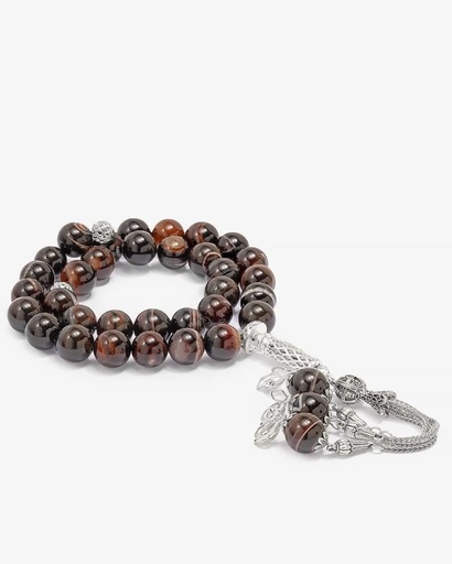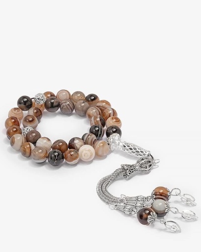 سبحة حجر عقيق بني بعروق دائري فاخرة