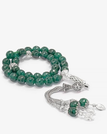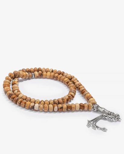 سبحة فضة حجر يشب جملي 99 خرزة