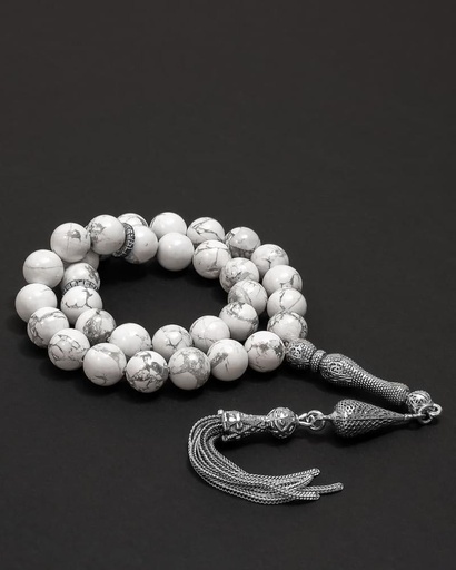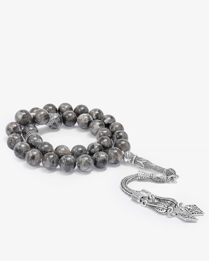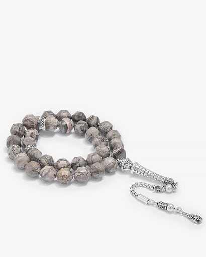 سبحة فضة حجر يشب رمادي بعروق