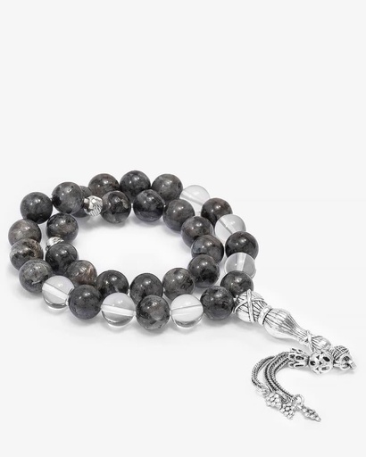 سبحة حجر فضة لابرادوريت وكلير كوارتز