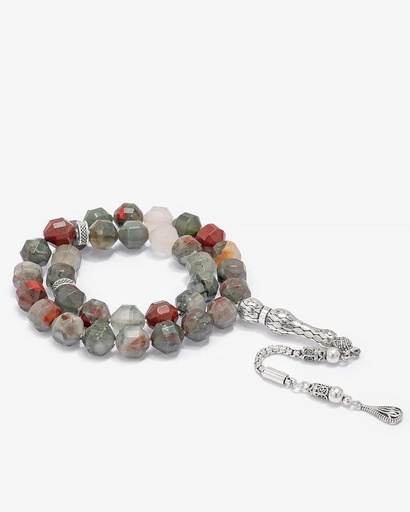 سبحة فضة حجر الدم الافريقي طبيعي