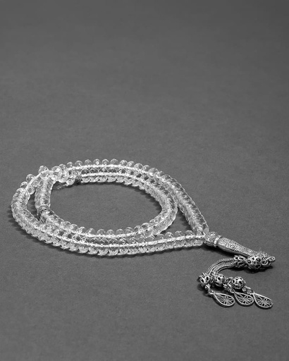 سبحة فضة حجر كلير كوارتز 99 خرزة
