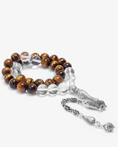 سبحة حجر عين النمر وكلير كوارتز طبيعي