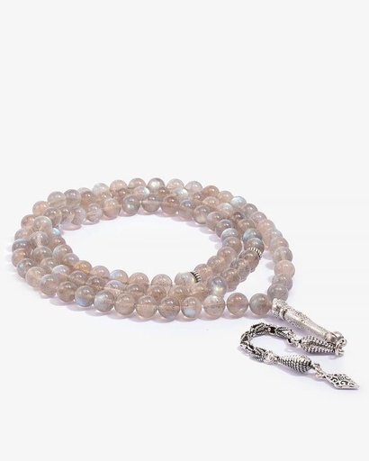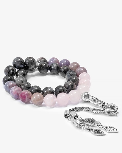 سبحة لابرادوريت وكوارتز وتورمالين وردي طبيعي