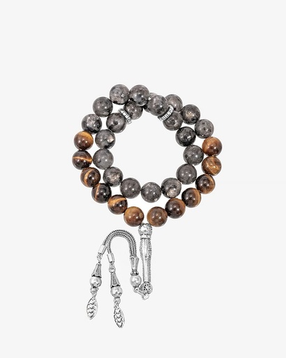 سبحة حجر لابرادوريت رمادي بقصة الاماس